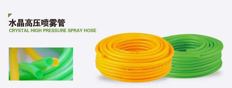 高壓噴霧管內層采用抗酸堿及耐藥型塑料,中層編織高密度、高拉力纖維,可抗160公斤爆破壓力,易于操作,靈活耐磨。外皮添加UV抗紫外線(xiàn)劑,烈日下暴曬不易龜裂??砂凑湛蛻?hù)要求制作各種規格以及國際標準接頭。